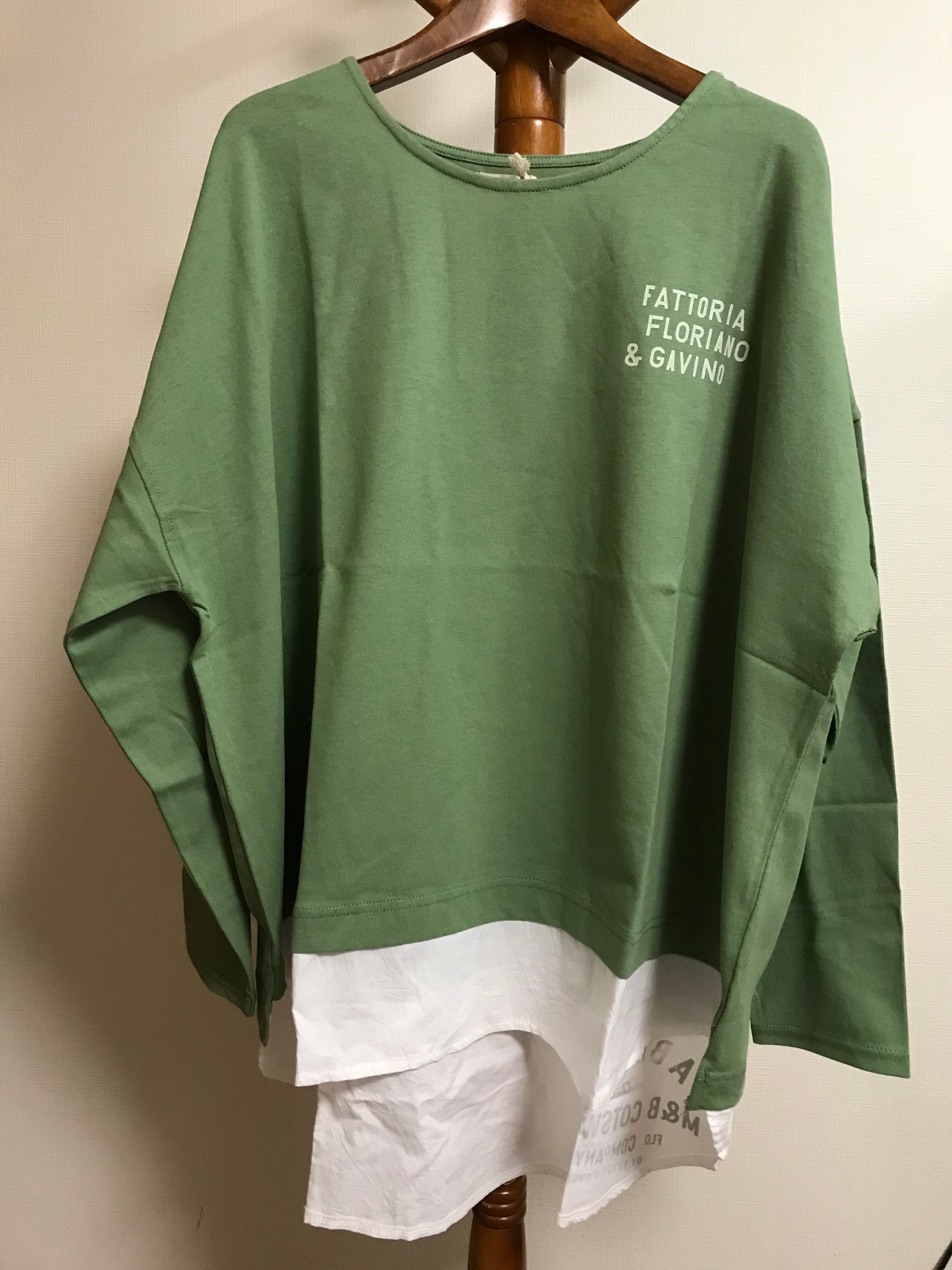 コットン レイヤード風 ロゴ 長袖 Tシャツ